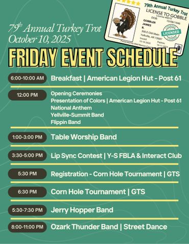 The 79th Annual Yellville Turkey Trot October 10 & 11, 2025The 79th Annual Yellville Turkey Trot October 10 & 11, 2025The 79th Annual Yellville Turkey Trot October 10 & 11, 2025